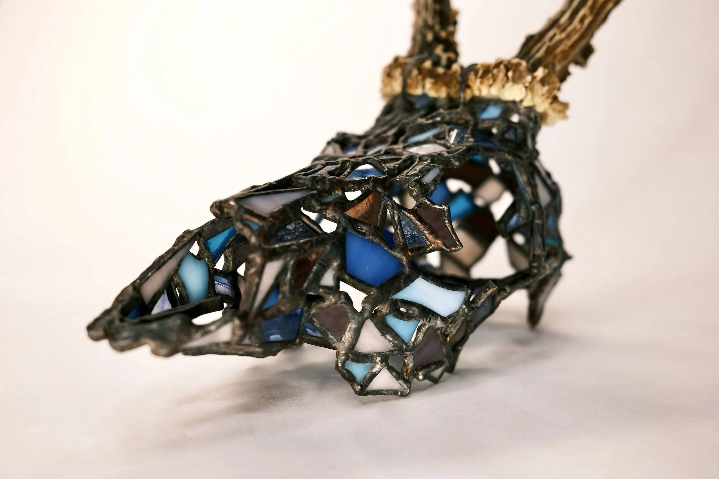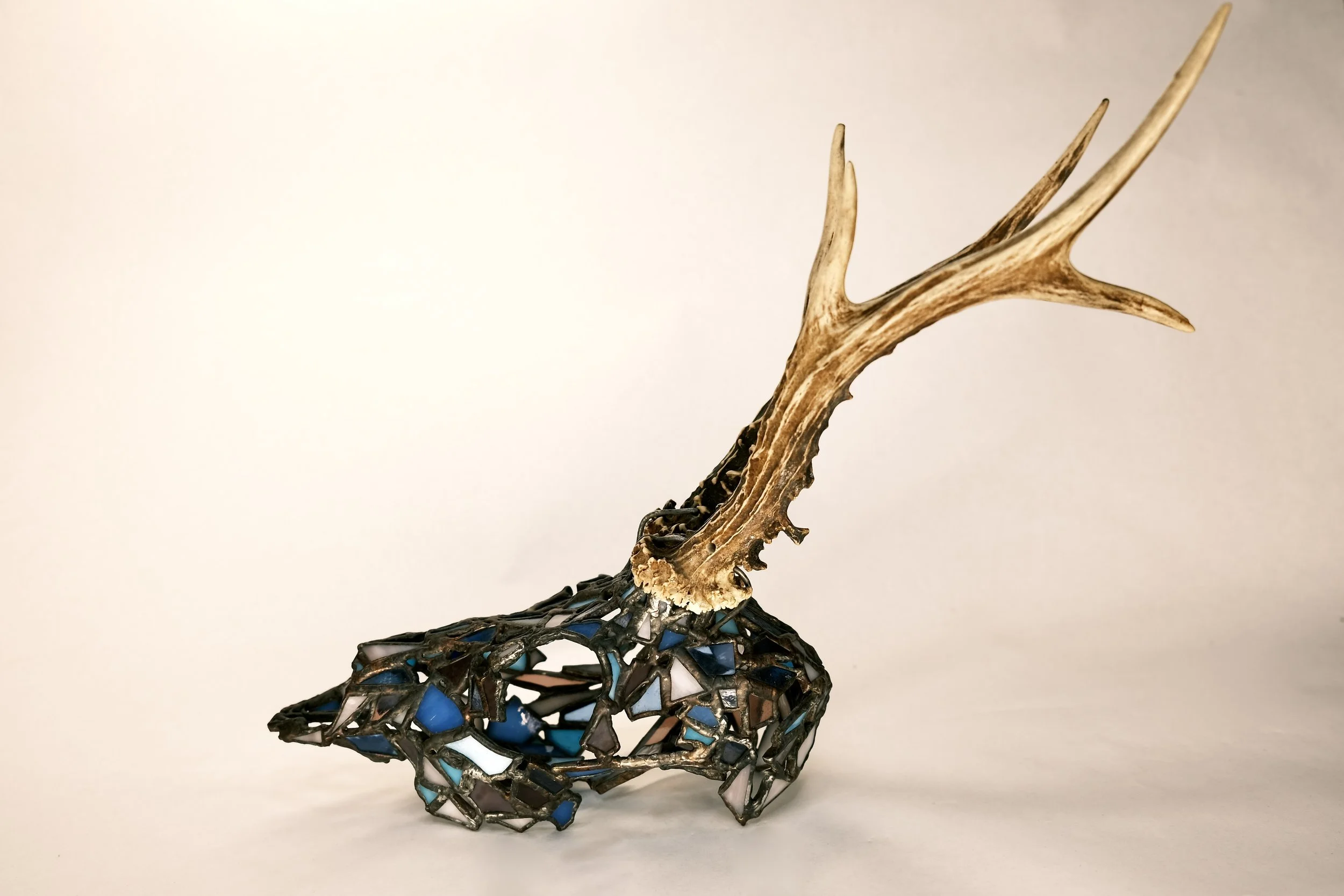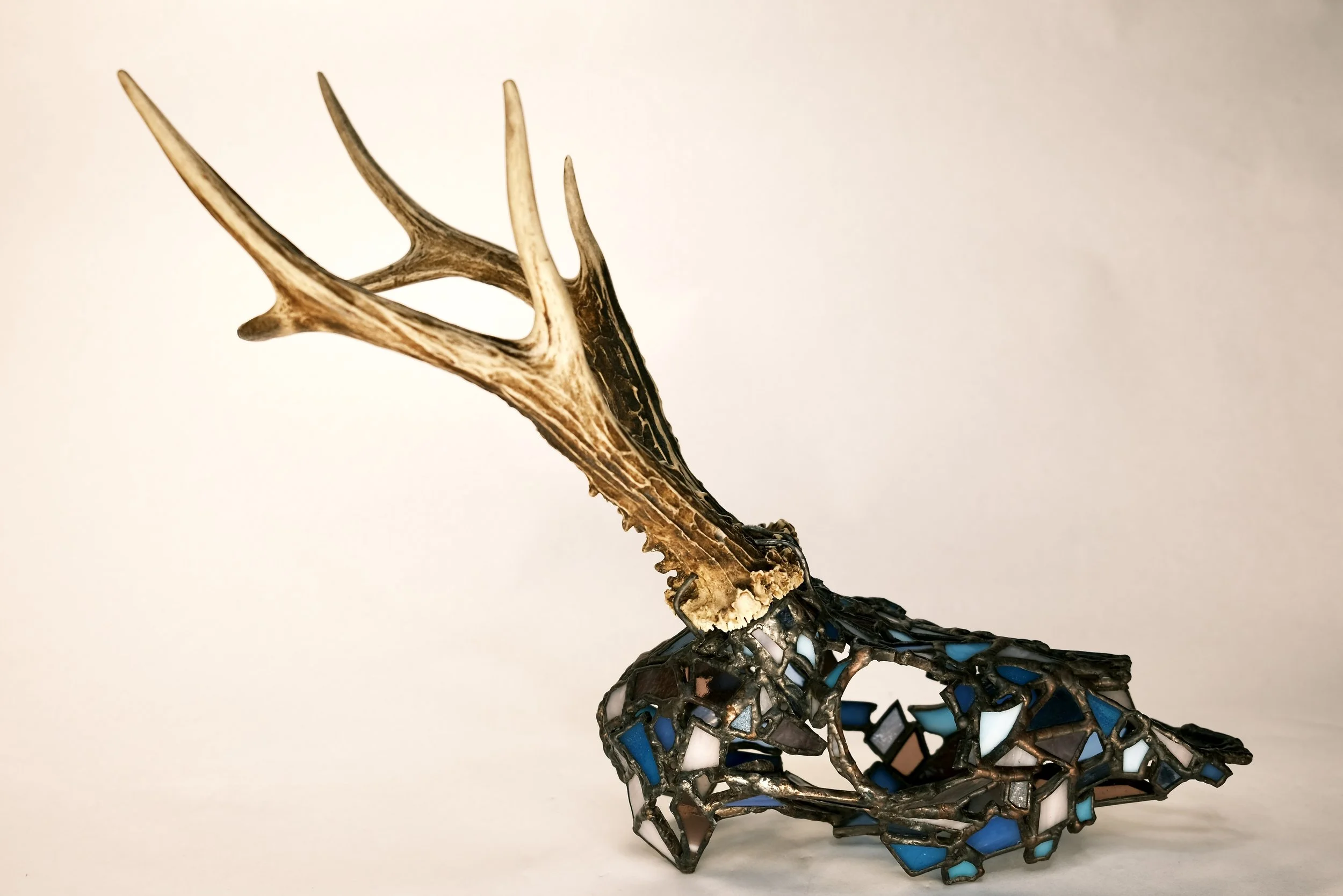 Fragile West - Deer- Bucky View fullsize View fullsize View fullsize View fullsize View fullsize View fullsize View fullsize View fullsize View fullsize View fullsize View fullsize View fullsize View fullsize View fullsize View fullsize 4” x 12” x 6”Glass, copper foil, solder, copper wire, deer antler