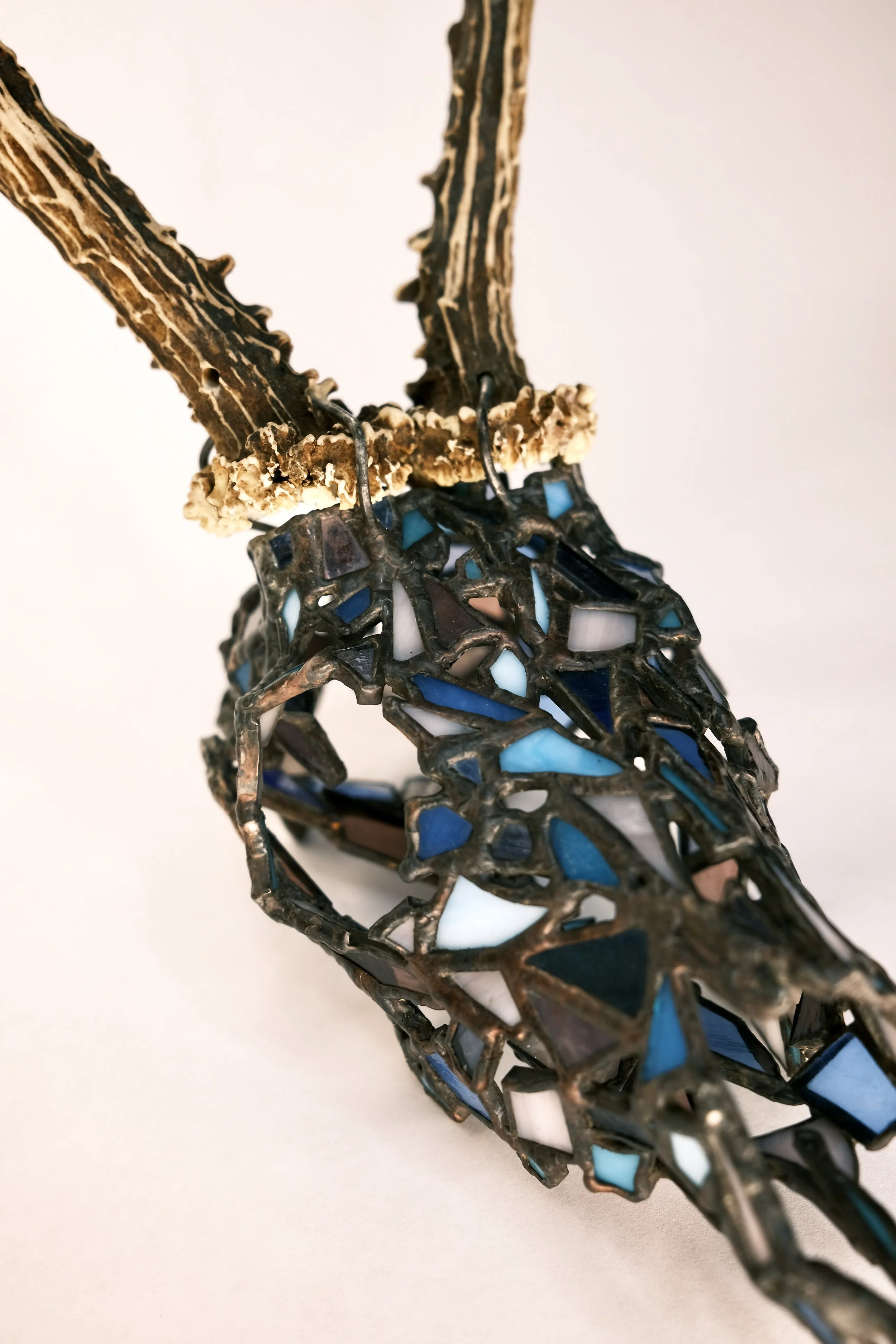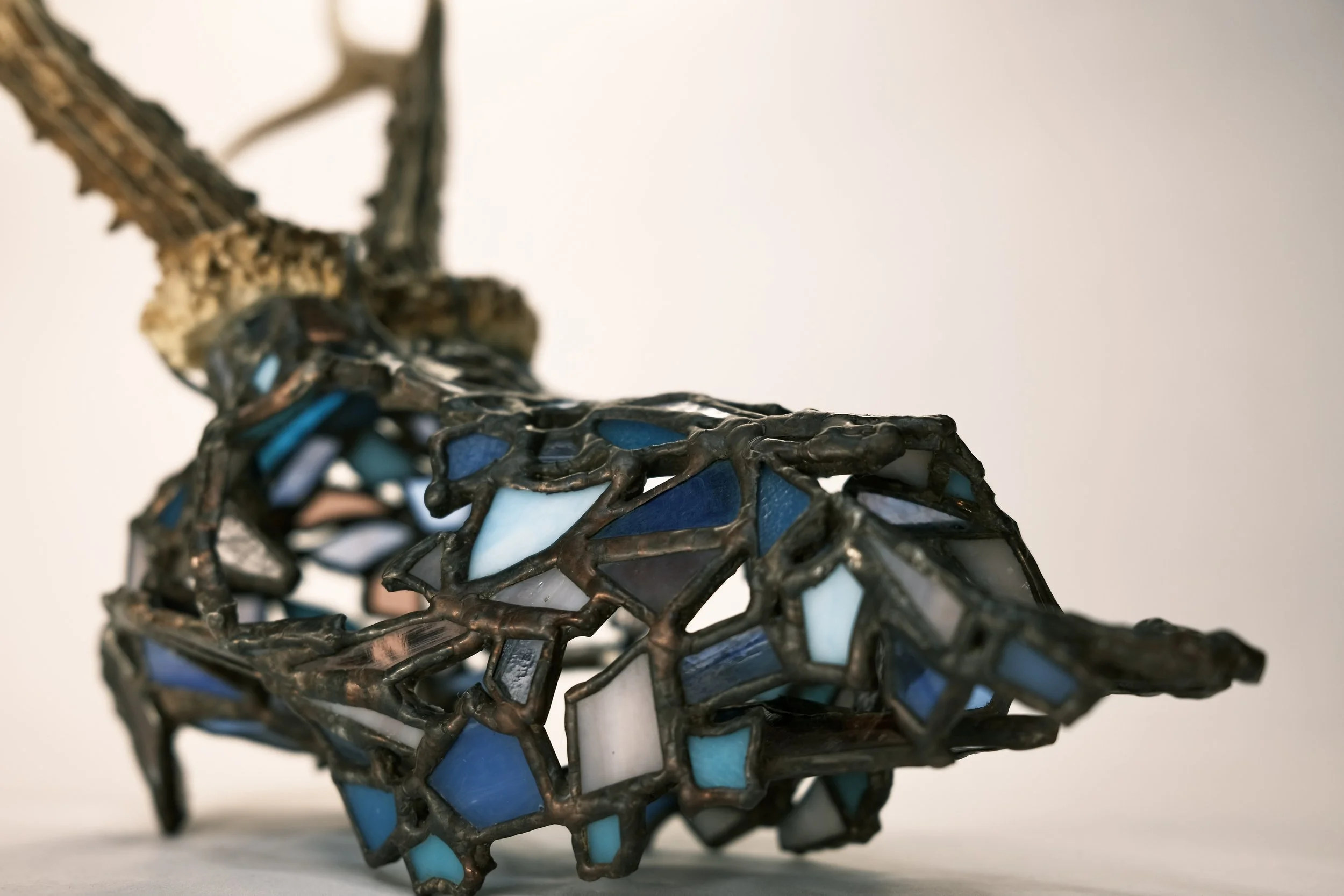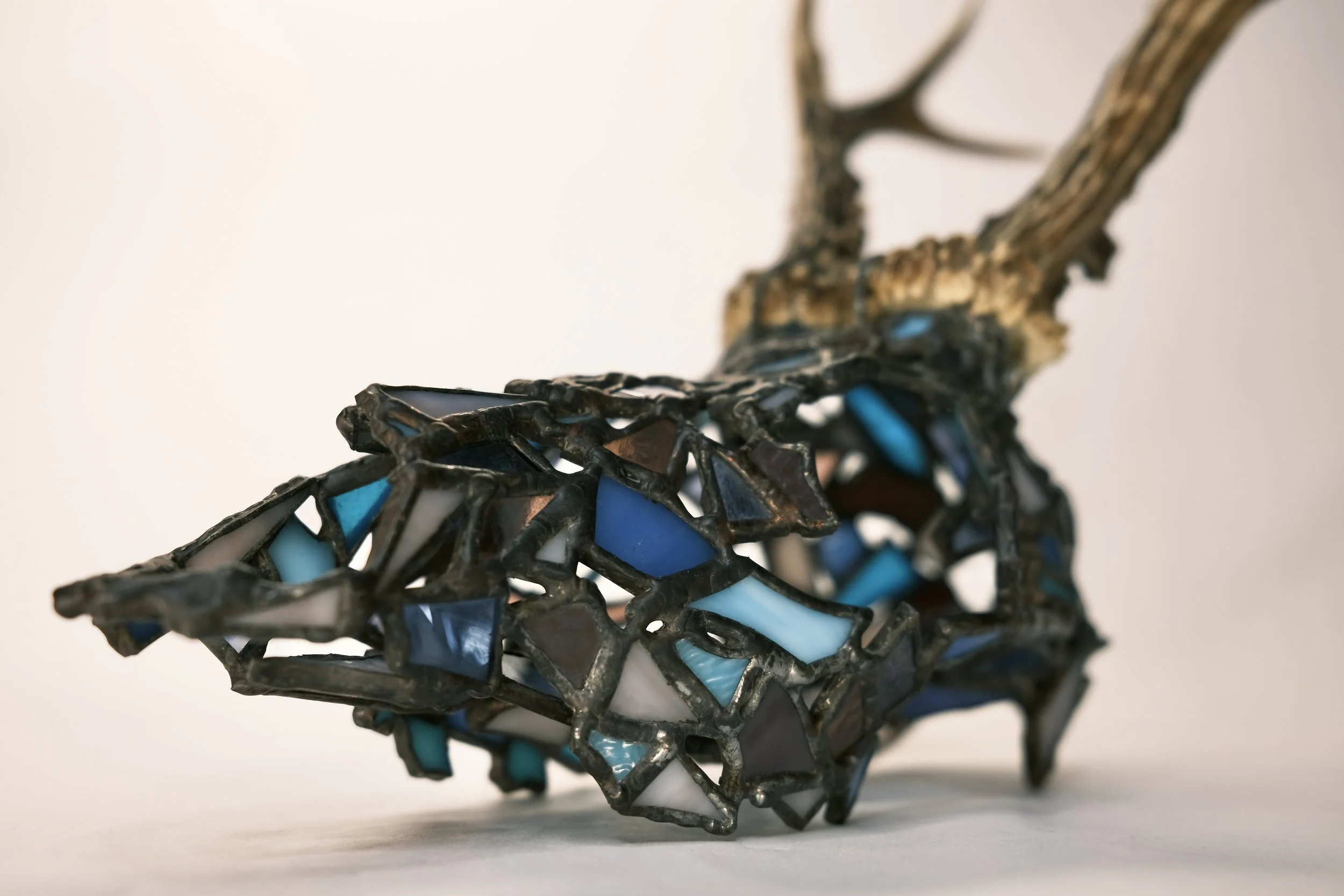 Fragile West - Deer- Bucky View fullsize View fullsize View fullsize View fullsize View fullsize View fullsize View fullsize View fullsize View fullsize View fullsize View fullsize View fullsize View fullsize View fullsize View fullsize 4” x 12” x 6”Glass, copper foil, solder, copper wire, deer antler