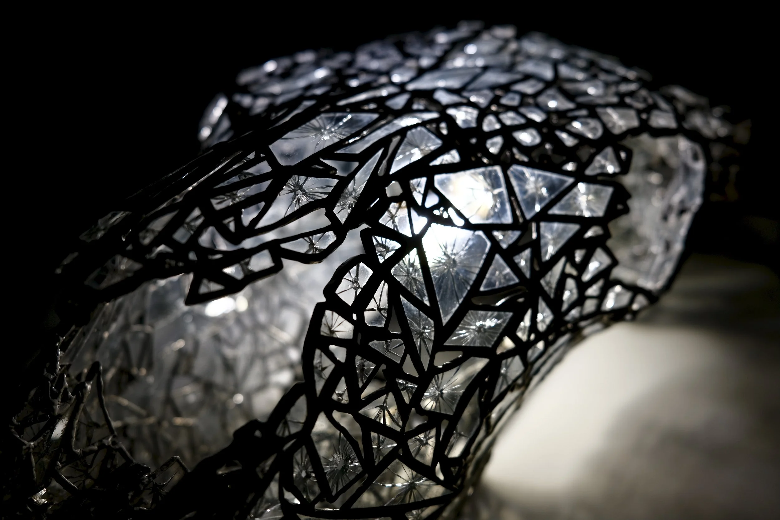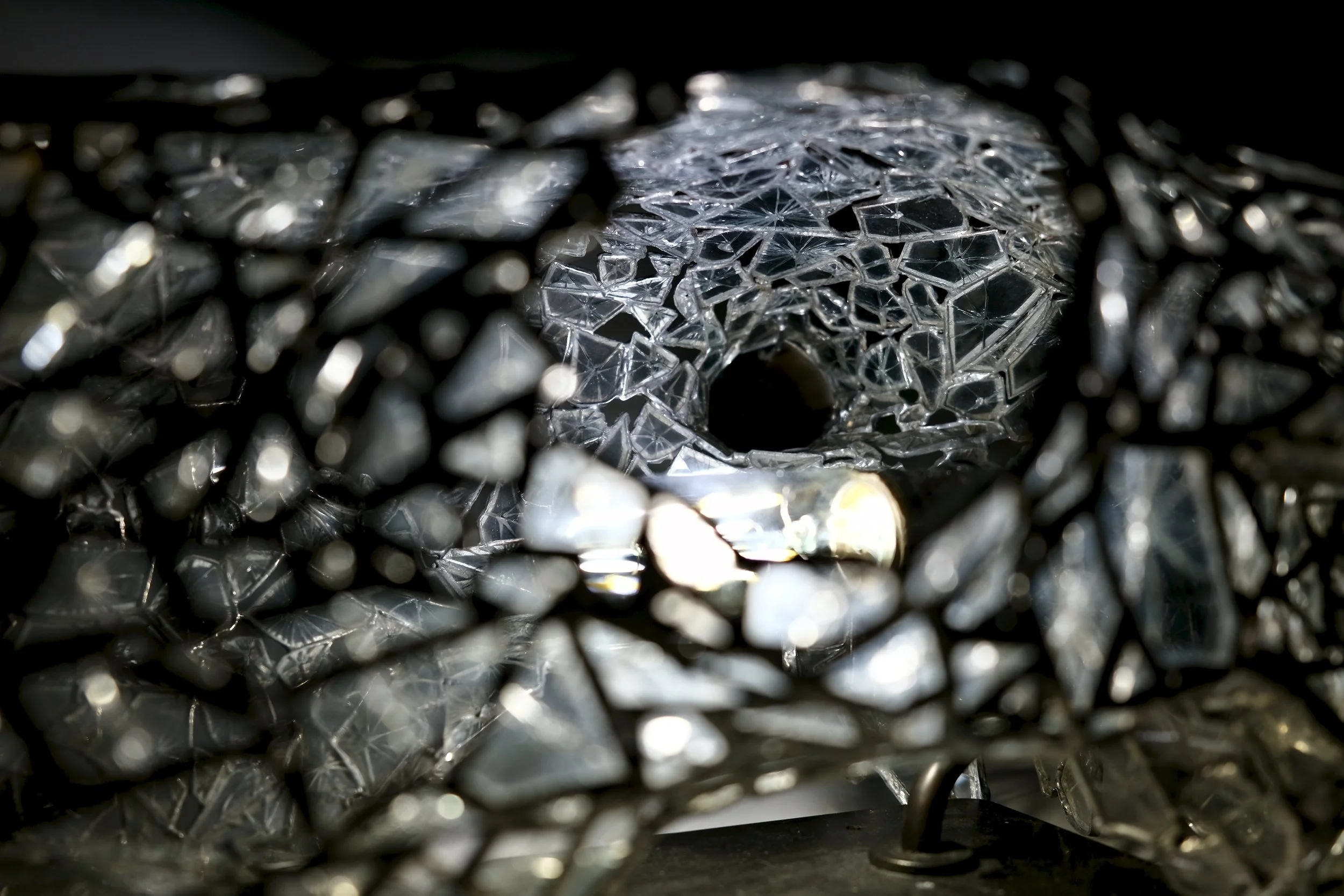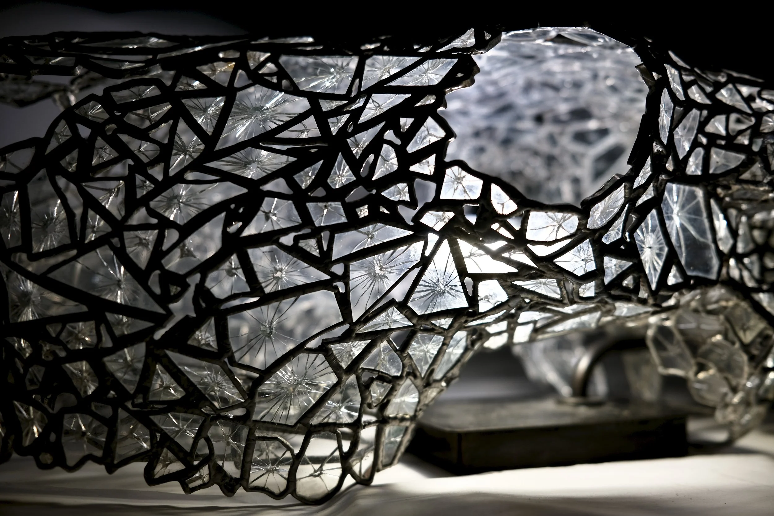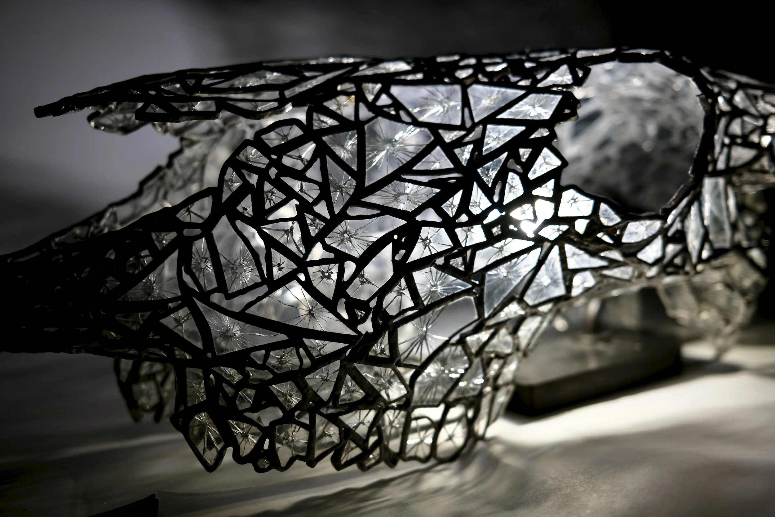 Each Individual piece of glass in this skull was broken by hand to achieve the effect