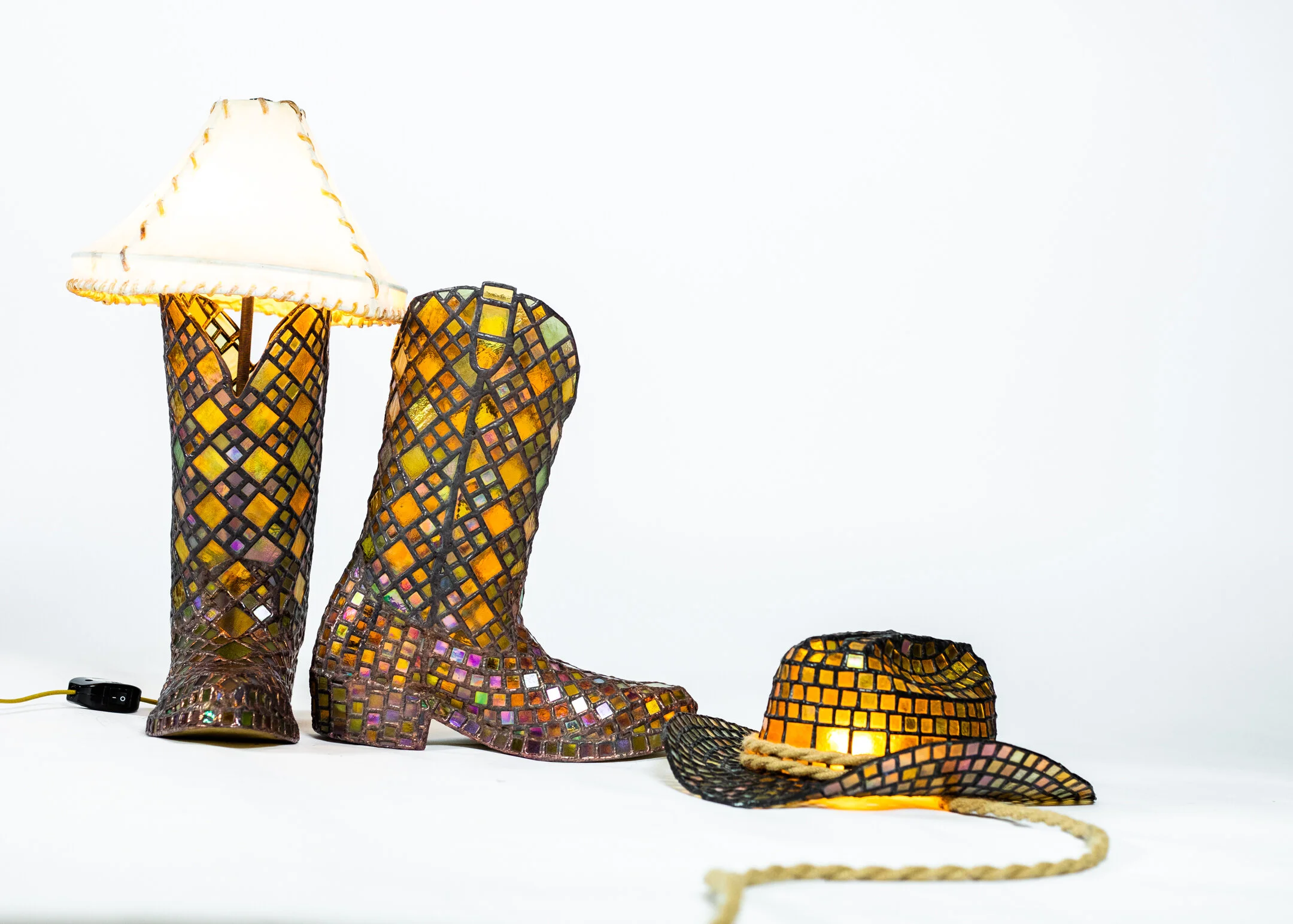 Fragile West - The Hat View fullsize View fullsize View fullsize View fullsize View fullsize View fullsize View fullsize View fullsize View fullsize One size fits none12.5” x 5.5” x 15”Glass, copper foil, solder, lamp cord