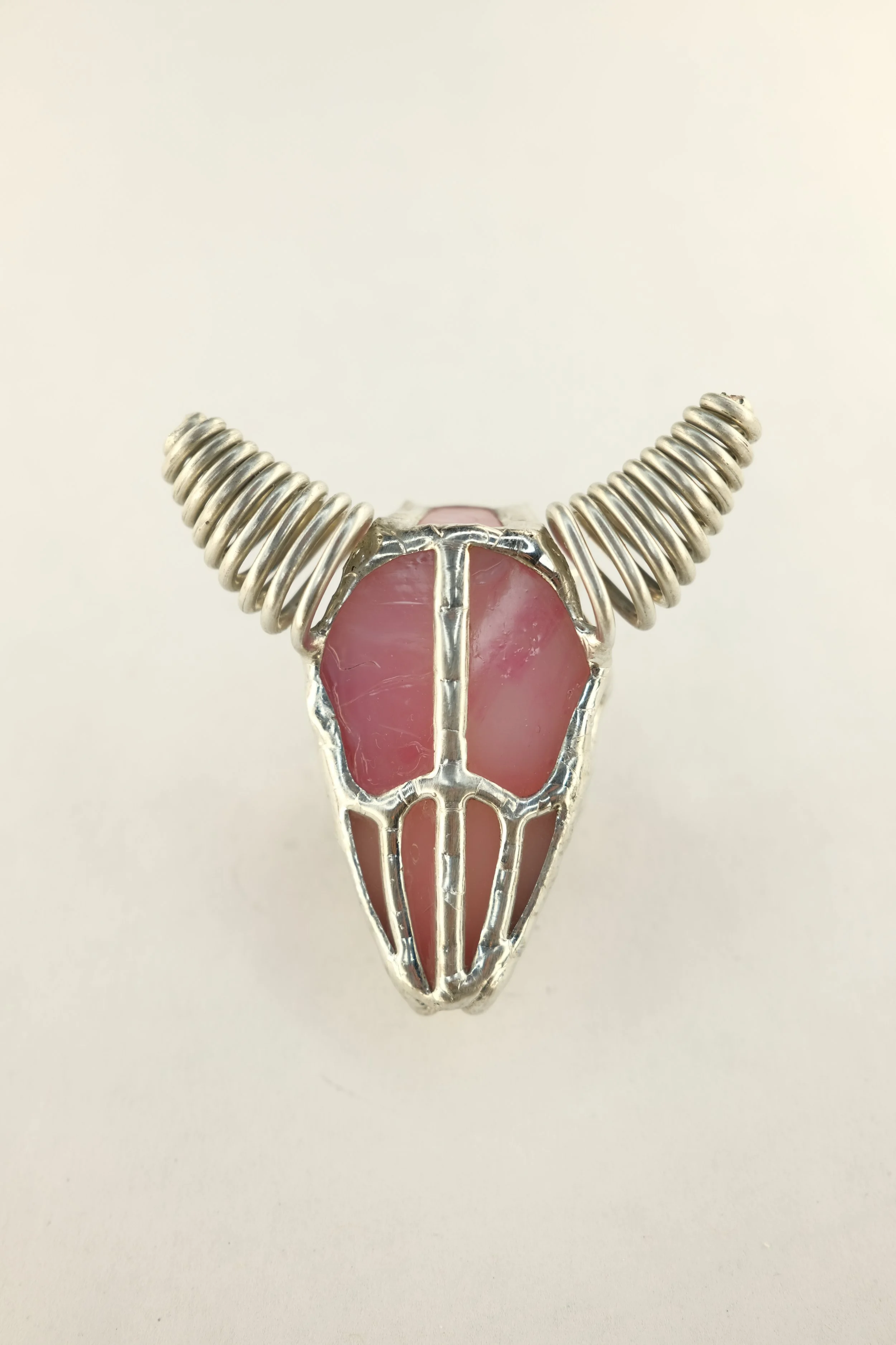 Handmade, custom stained glass bison skull bolo ties. The skull itself is 3" x 2" x 1", cord length is typically 36" knot to knot. Made from stained glass, copper foil, copper wire, and lead free solder with leather cord.